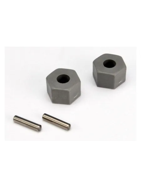 Wheel hubs, hex (tall offset, Rustler/Stampede front) (2)/ axle pins (2.5x10mm) (2)