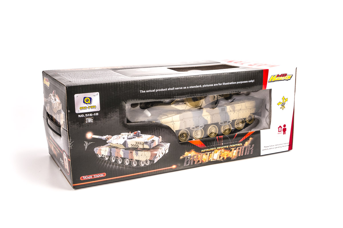 Не стоит переживать о безопасности игры: танк оснащен инфракрасной пушкой, которая добавляет элемент интерактивности без риска для здоровья. Для работы пульта управления потребуется всего две батарейки типа AA, которые легко купить отдельно.