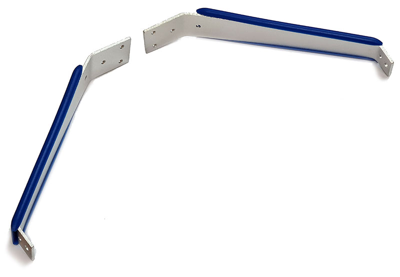В комплект входит набор синих пластиковых накладок, которые не только придают изделию эстетичный вид, но и защищают стойки от повреждений. С толщиной 2 мм стойки обладают необходимой жесткостью, что позволяет им выдерживать нагрузки в различных условиях эксплуатации. Диаметр отверстия для вала составляет 4 мм, что обеспечивает совместимость с большинством моделей и позволяет легко устанавливать стойки. Крепёжные отверстия имеют диаметры 3 мм, что упрощает монтаж и демонтаж.