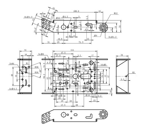 Установка механизмов и электроники на это шасси осуществляется просто и intuitivно, что делает его подходящим как для начинающих робототехников, так и для более опытных разработчиков. Оно предоставляет широкий простор для экспериментов и творчества, позволяя вам реализовать любые идеи.