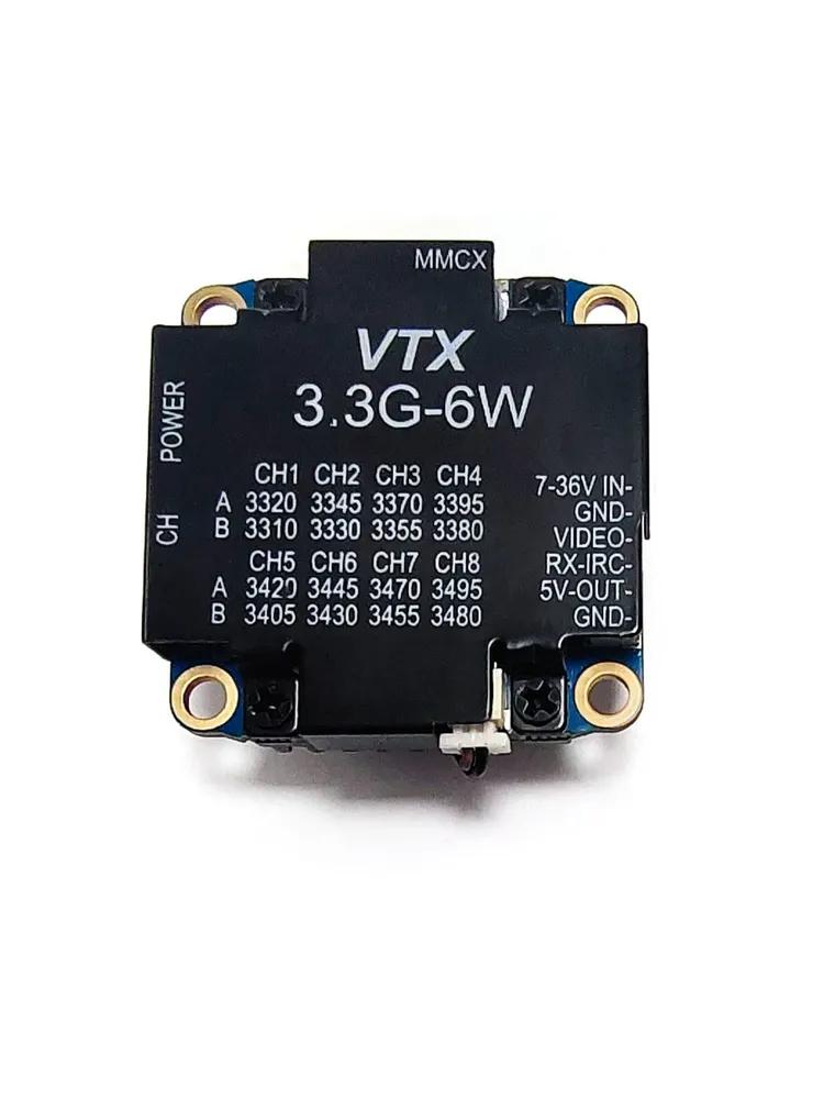 Видеопередатчик 3.3G-6W VTX является устройством для передачи видеосигнала в реальном времени. Он предназначен для использования в системах FPV (first-person view), что делает его подходящим вариантом для различных приложений, включая дронов и другие радиоуправляемые модели. Данное устройство позволяет получать стабильное и качественное изображение на значительном расстоянии, что является ключевым аспектом для операторов, которые ценят прямую передачу видео.