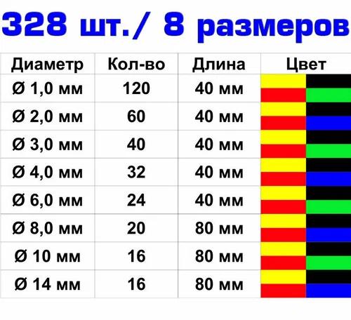 - Диаметр 3 мм, длина 40 мм — 32 шт.