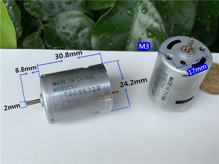 С конструктивной точки зрения, электродвигатель выполнен с учетом требований современных технологий. У него оптимальные размеры: диаметр корпуса составляет 24 мм, длина корпуса – 31 мм, а длина вала – 7 мм. Компактные размеры позволяют установить мотор в ограниченном пространстве без ущерба для производительности. Диаметр вала составляет 2 мм, что совместимо с большинством стандартных креплений для моторов этого типа.