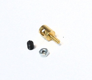 Фиксатор имеет следующие характеристики: диаметр отверстия под тягу составляет 1.8 мм, а диаметр самого фиксатора равен 4 мм. Стопорный винт, который также включен в комплект, имеет размеры 3x4 мм, а гайка – M2.