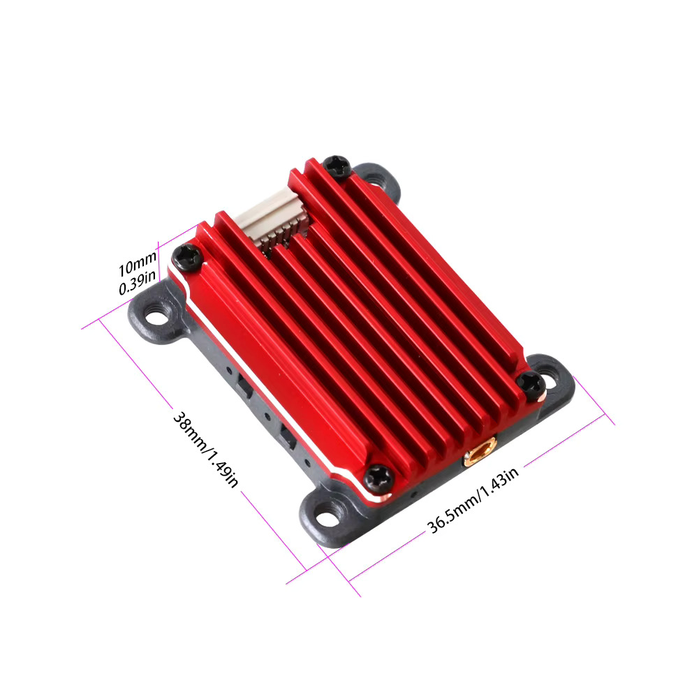 Устройство также показывает отличные результаты в условиях повышенных помех. Вы сможете использовать его в сложных электромагнитных полях, не опасаясь ухудшения качество передачи сигнала. VTX-104 минимизирует задержку, что критично для операторов дронов, желающих быть в полной мере вовлеченными в процесс полета. Легко настраиваемый интерфейс и продуманная конструкция делают его доступным и удобным в использовании для пилотов любого уровня подготовки — от новичков до опытных летчиков.