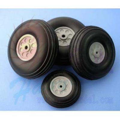 Покрышка из полиуретанового каучука обладает отличными амортизационными свойствами, что позволяет предотвратить повреждения как самого колеса, так и модели в целом. Это особенно актуально при выполнении маневров или приземления на непростые поверхности. Значение диаметра под ось шасси составляет 5 мм, что делает это колесо совместимым со многими моделями, доступными на рынке. Ширина колеса в 46 мм обеспечивает хорошую стабильность, что критично для эффективной работы авиамодели.