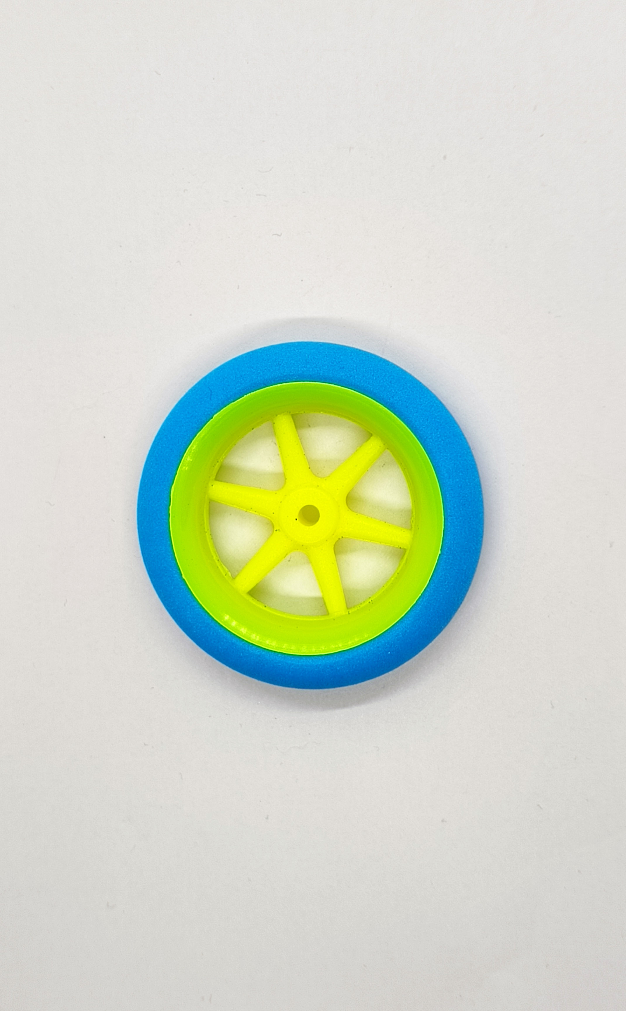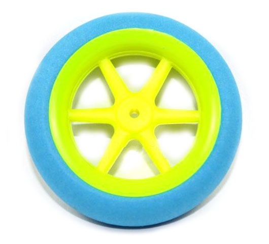 Колесо выполнено с использованием прочной пластиковой ступицы, что гарантирует долговечность и надежность при эксплуатации. Покрышка изготовлена из плотного поролона, который демонстрирует отличные амортизационные свойства и обеспечивает высокий уровень сцепления с поверхностью. Диаметр под ось шасси составляет 2.5 мм, что позволяет легко интегрировать данную деталь в вашу модель, не требуя дополнительных доработок.