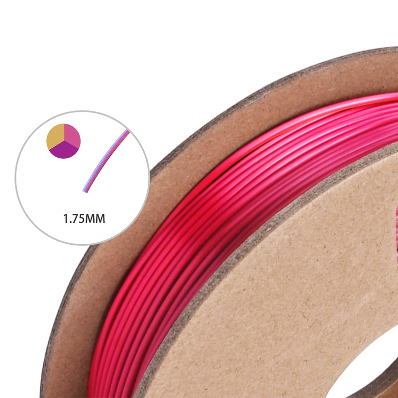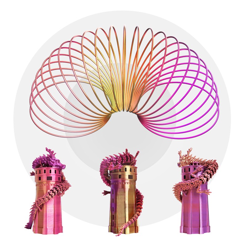 Шелковый трехцветный PLA-филамент — это идеальный выбор для создания уникальных и выразительных 3D-изделий. В наборе представлены четыре катушки по 250 г каждая, каждая из которых обладает поистине впечатляющими характеристиками. Благодаря использованию этого пластика, ваши проекты будут выглядеть более эффектно и привлекательно. Переливающиеся цвета придают моделям неповторимый визуальный эффект, при этом угол обзора меняет оттенок, создавая интересные оптические иллюзии.