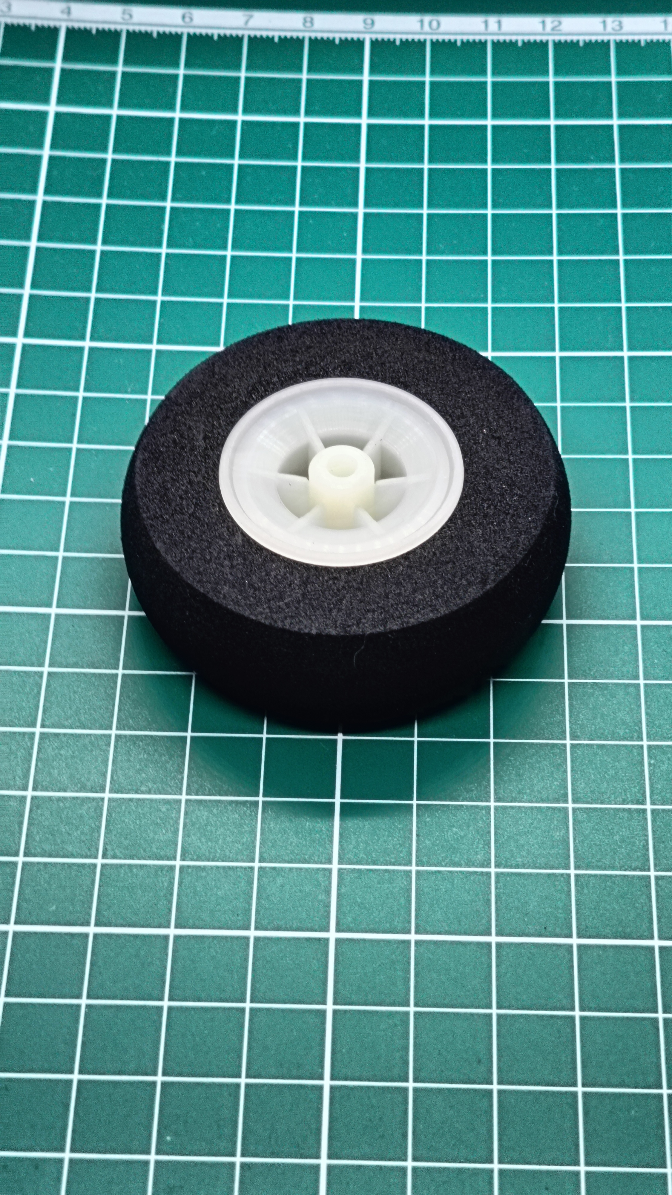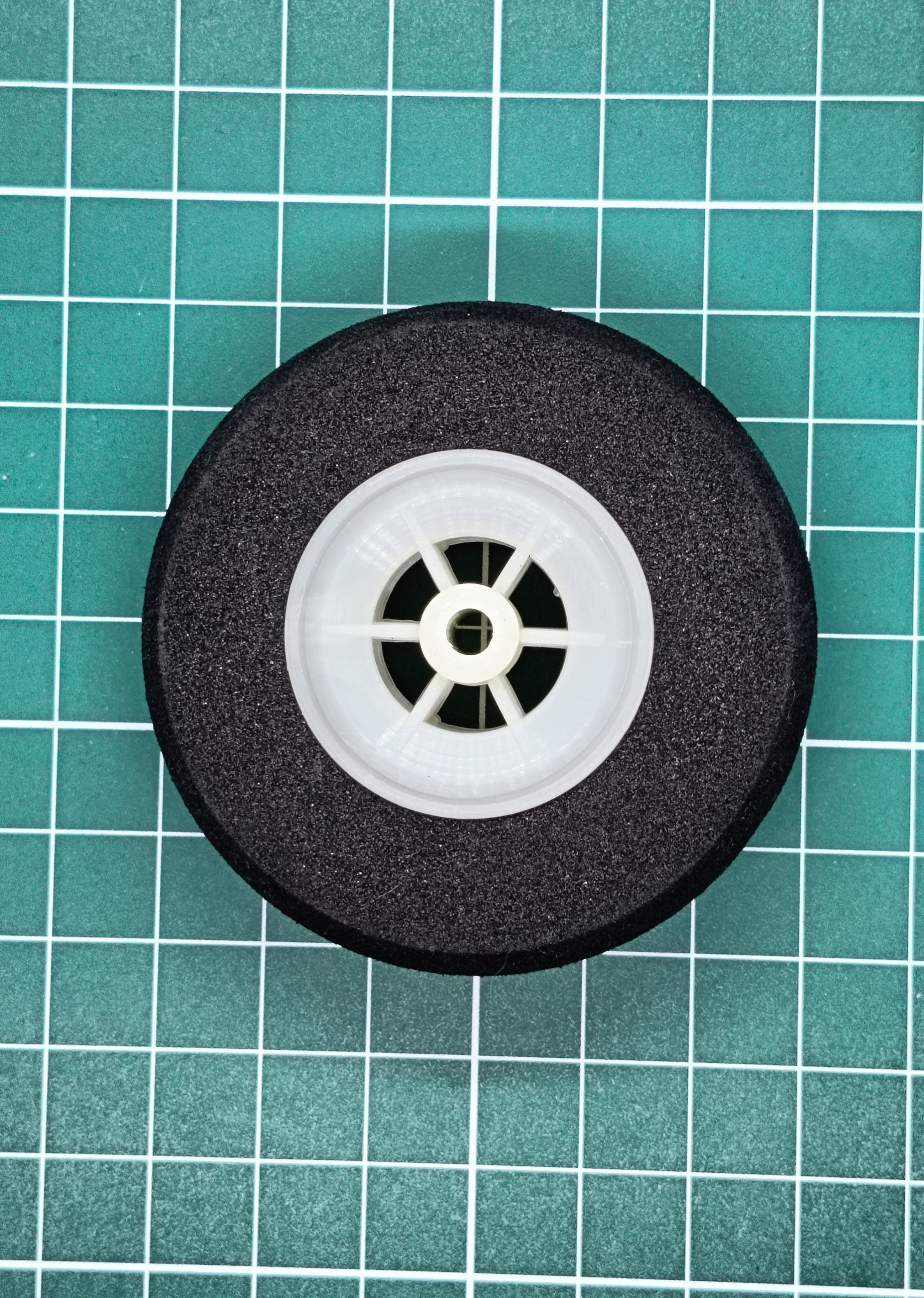 Покрышка, выполненная из плотного поролона, обеспечивает отличное сцепление с поверхностями и снижает риск проколов, что особенно важно при частых запусках и приземлениях. Внешний диаметр колеса составляет 60 мм, а ширина – 21 мм, что делает его сбалансированным выбором для различных типов авиамоделей. Диаметр под ось шасси – 4 мм, что совместимо с большинством стандартных механизмов.
