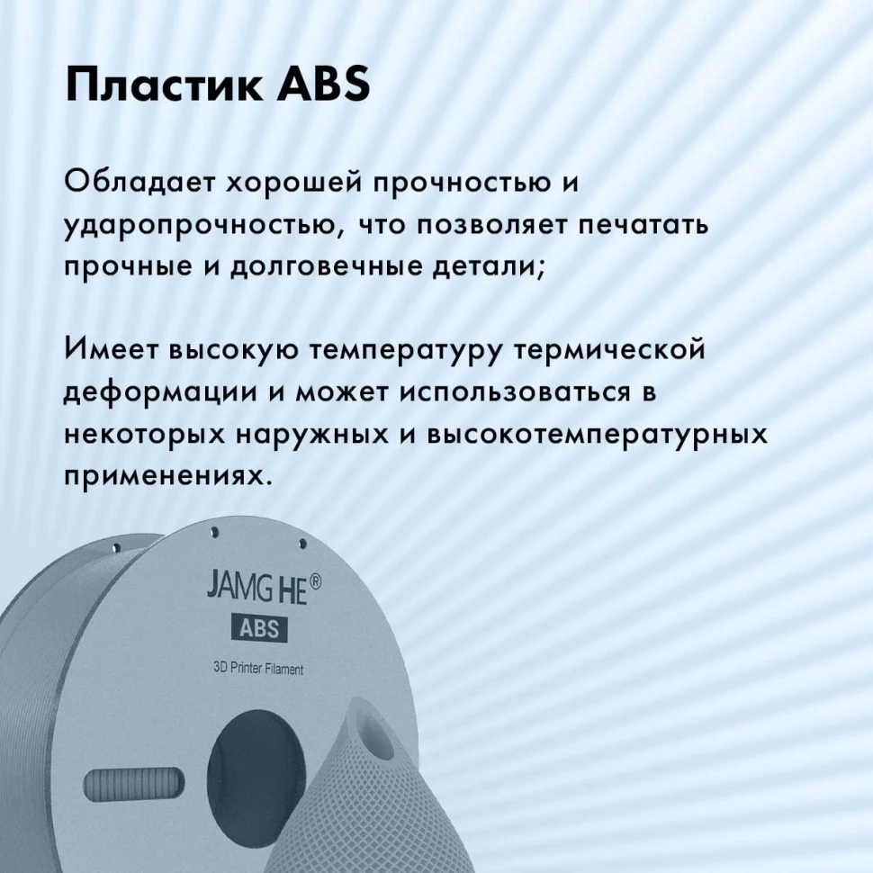 Данная модель поставляется в удобной упаковке весом 1 кг, что обеспечивает достаточный запас для выполнения различных проектов. Доступный серый цвет пластика позволяет получать изделия с аккуратной и эстетически привлекательной поверхностью, готовые к использованию без дополнительной обработки. Если вы хотите купить надежный и универсальный пластик для 3D-принтера, ABS от JAMG HE станет отличным выбором для ваших творческих решений.