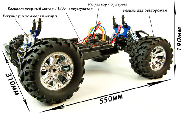 Радиоуправляемый монстр ACME Barbarian EXL сочетает в себе мощь, проходимость и высокую скоростную производительность. Эта модель, представленная в обновлённом формате, отличается большей длиной, шириной и высотой, что значительно улучшает её маневренность и проходимость по различным типам ландшафта. Система бесколлекторного привода, работающего на Li-Po аккумуляторах 11.1 В, обеспечивает впечатляющую скорость и хорошую тягу, позволяя легко преодолевать любые преграды.