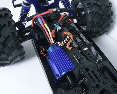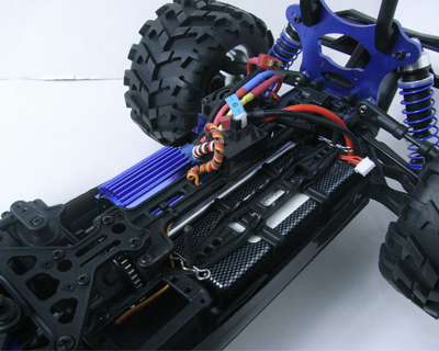 В модели предусмотрены регулируемые крепления для батарей, что позволяет использовать практически любые Li-Po аккумуляторы. Опциональный механический тормоз обеспечивает точный контроль над тормозным усилием, а большие амортизаторы толщиной 16 мм способствуют улучшенной работе масла внутри них. Все шестерни изготовлены из прочной стали, что гарантирует долговечность эксплуатации.
