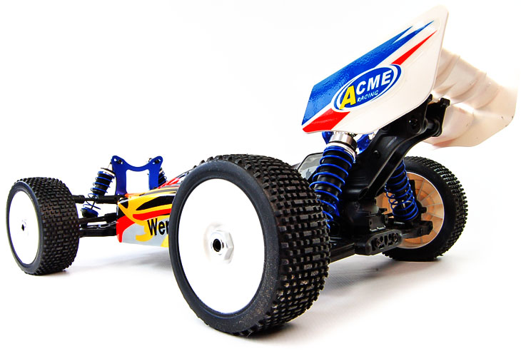 ACME Werewolf оснащена специальными колесами, которые обеспечивают отличное сцепление на асфальте и на грунте. Модель полностью собрана и готова к заездам, что позволяет сэкономить время на подготовку. Наличие системы рулевого управления с использованием С-хабов и цельного алюминиевого шасси способствуют улучшенной управляемости и развесовке.