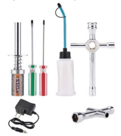 В комплект входит масло в бутылке объемом 250CC, что обеспечивает легкость в обслуживании двигателей. Набор включает как небольшие, так и крупные крестовые отвертки различных размеров, что позволяет охватывать широкий спектр задач, связанных с ремонтными работами. Малые крестовые отвертки имеют размеры 4 мм, 5 мм, 5,5 мм и 7 мм, в то время как крупные — 5,5 мм, 7 мм, 8 мм, 10 мм и 17 мм. Это разнообразие инструментов обеспечивает удобство в работе с различными узлами и конструкциями модели.