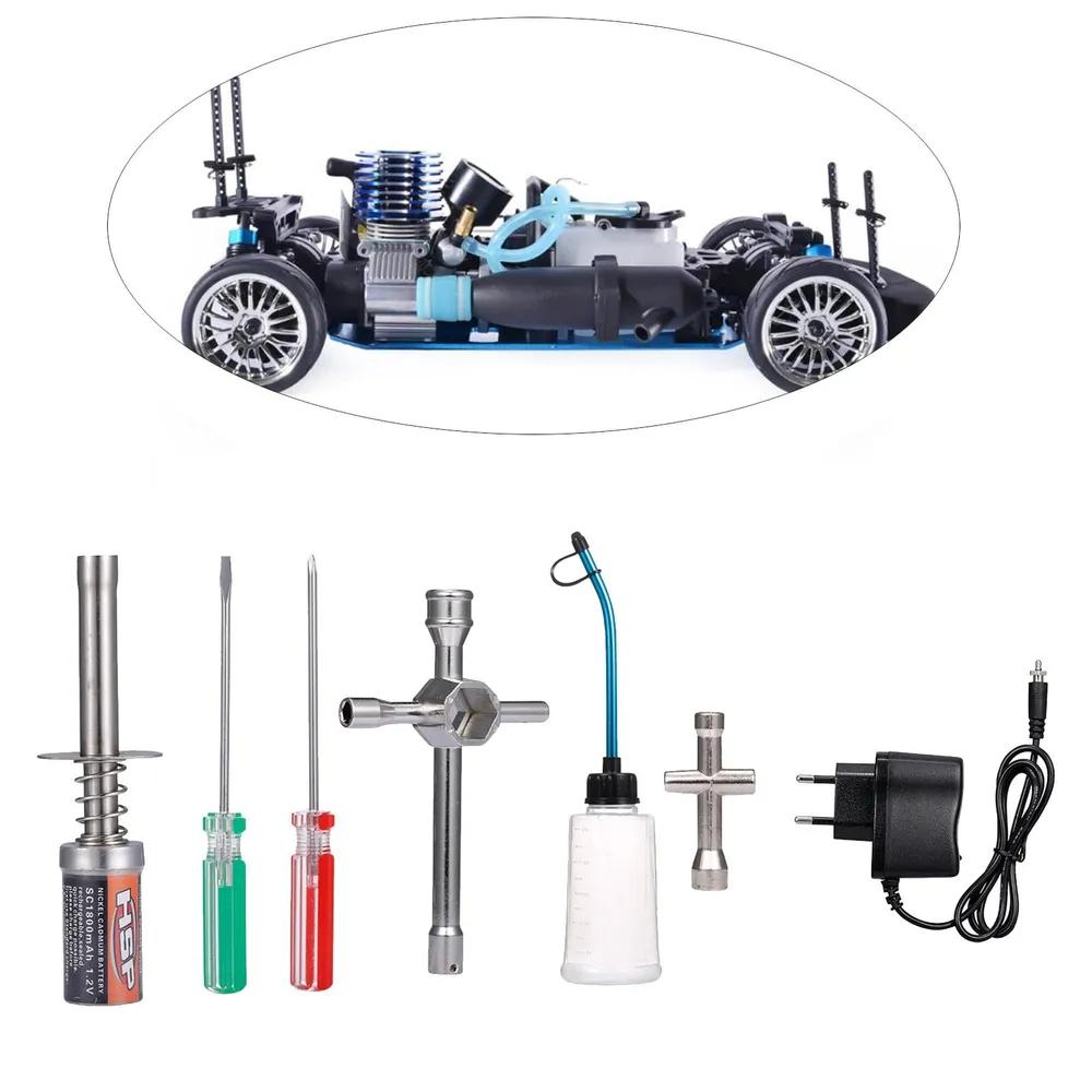 Набор инструментов для ремонта Racing Nitro Starter Kit предоставляет все необходимые инструменты для запуска и поддержки работы моделей автомобилей на нитро. Он подходит для моделей Hsp Redcat в масштабе 1/8 и 1/10, что делает его универсальным решением для владельцев таких автомобилей.