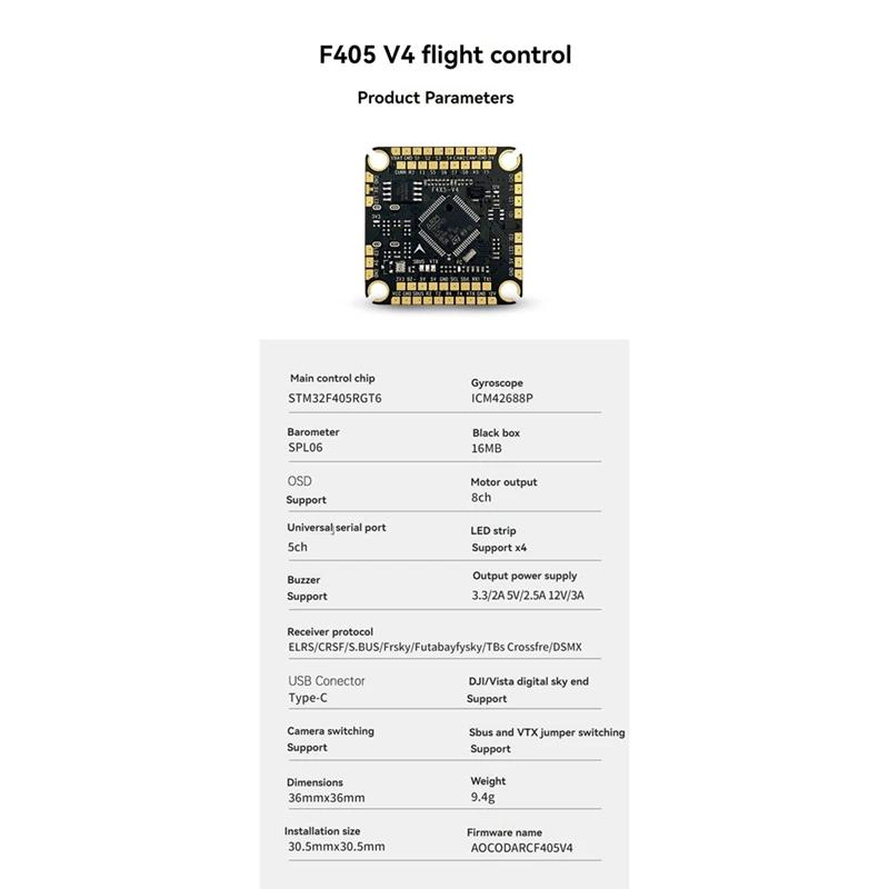 Полетный контроллер Aocoda F460S V4 с интегрированным ESC 60A — это идеальное решение для тех, кто стремится к максимальной производительности и надежности в управлении дронов. Устройство оснащено современным чипом STM32F405RGT6 и гироскопом ICM42688P, что обеспечивает высокую точность и стабильность при полетах.