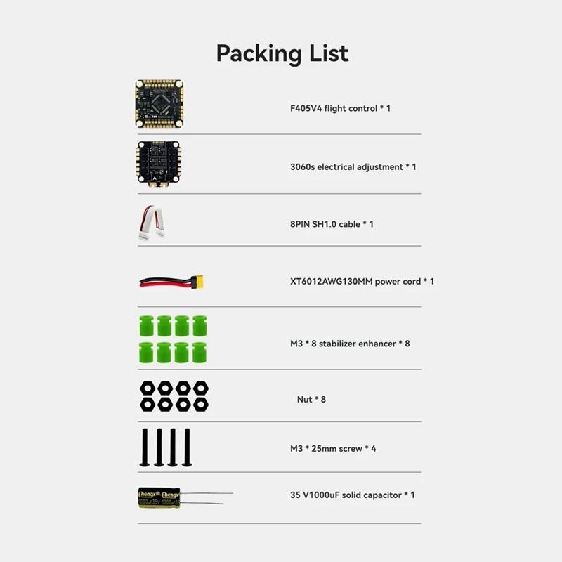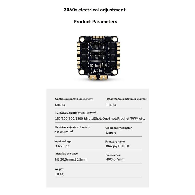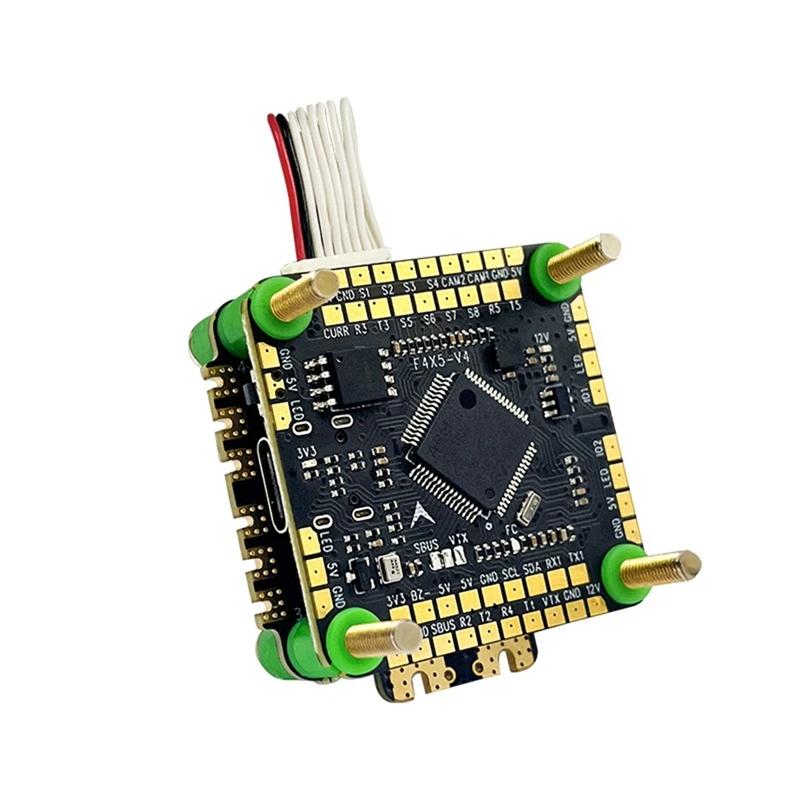 Контроллер поддерживает цифровой воздушный терминал DJI/Vista, что позволяет использовать его с системами FPV, обеспечивая высокое качество передачи видео и управления. Благодаря четырем в одном ESC с выходной мощностью до 60A, данный контроллер эффективно распределяет нагрузку и обеспечивает стабильную работу двигателя, что критически важно для динамичных полетов.