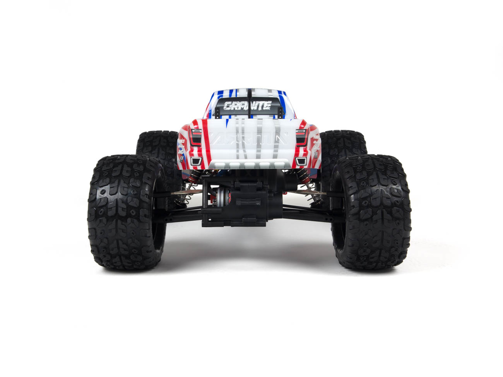Комплектация модели включает все необходимые элементы для начала эксплуатации. Беспроводная аппаратура управления Arrma ATX100 с частотой 2.4GHz гарантирует стабильную связь и отзывчивость на команды. Влагозащищенное серво руля Arrma ADS-5 и бесколлекторный мотор Arrma BLS 4000kV обеспечивают эффективность работы в любых погодных условиях. В комплект также входят аккумулятор NiMh 8.4V 3300mAh, зарядное устройство, набор ключей и инструкция.