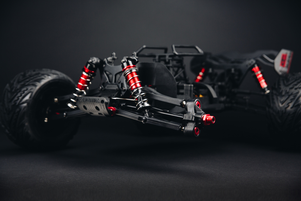 Кратон BLX185 оборудован мощной системой 4WD, что гарантирует отличную проходимость на любых поверхностях. Усиленный корпус дифференциала и композитные передние и задние бамперы обеспечивают надежную защиту, что делает эту модель идеальной для агрессивных гонок и трюков. Влагозащитный бокс для приемника обеспечивает безопасность электронных компонентов даже в неблагоприятных условиях, а улучшенное крепление аккумулятора и сервопривода увеличивает устойчивость и надежность конструкции.