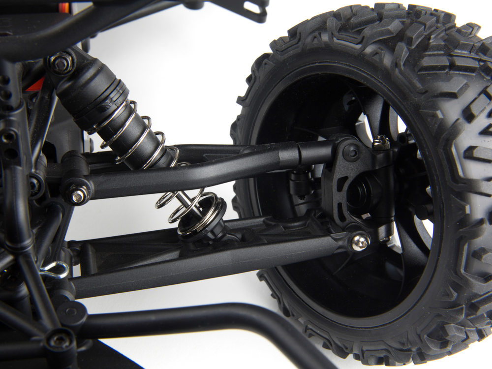 Важным преимуществом Mojave является прочное шасси, состоящее из двух продольных рам, изготовленных из высококачественного металла и композитных материалов. Это обеспечивает максимальную жесткость и долговечность конструкции. Модель оснащена мощной бесколлекторной системой BLX, которая позволяет развивать скорость до 100 км/ч. Защита электроники от влаги и грязи позволяет использовать машину при любых погодных условиях, даря вам возможность наслаждаться ездами даже в ненастье.