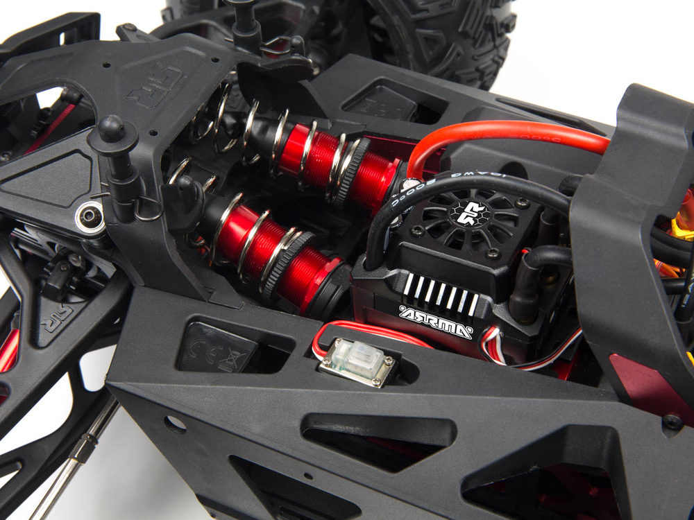 Одной из выдающихся черт ARRMA Nero 6S является возможность блокировки дифференциалов с пульта управления, благодаря чему моделист может выбрать один из четырех режимов работы трансмиссии. В режиме BLAST все дифференциалы свободны, что обеспечивает скорость и маневренность. Режим WHEELIE с заблокированным центральным дифференциалом идеально подходит для выполнения эффектных трюков. Режим DRIFT с заблокированными центральным и задним дифференциалами позволяет легче управлять заносом, а режим CLIMB, в котором все дифференциалы заблокированы, предоставляет максимальную проходимость на сложных участках.