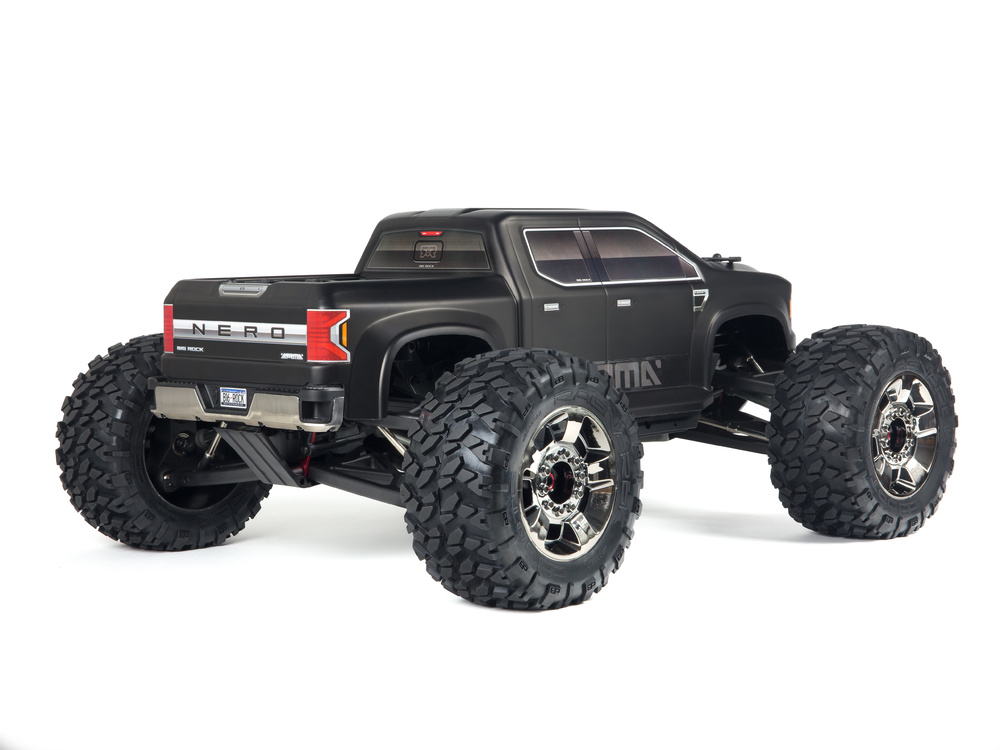 ARRMA Nero Big Rock BLX 4WD 6S представляет собой высококачественный монстр трак, который воплощает в себе передовые технологии и мощный дизайн. Этот масштабный автомобиль 1/8 отличается прочным шасси NERO, что обеспечивает выдающуюся устойчивость и маневренность на различных типах поверхностей. Черный матовый корпус придаёт машине агрессивный вид, а новые резиновые покрышки DBoots и хромированные диски делают её ещё более привлекательной.