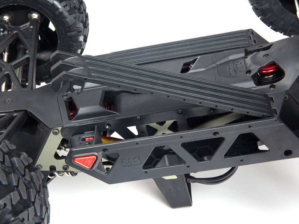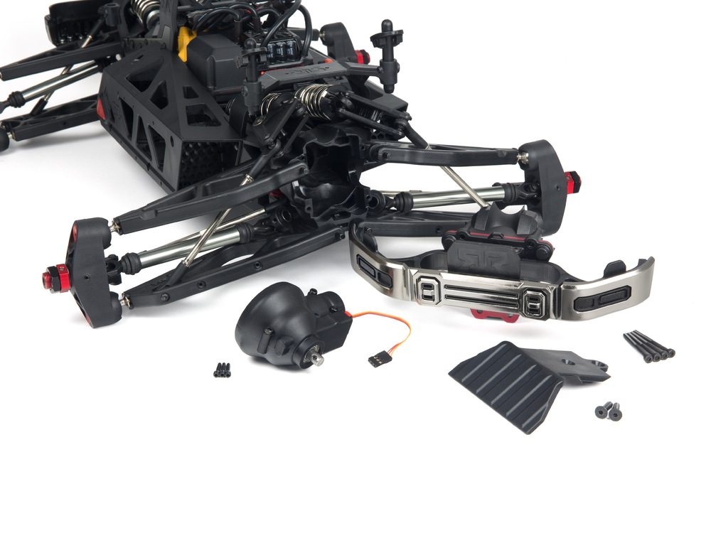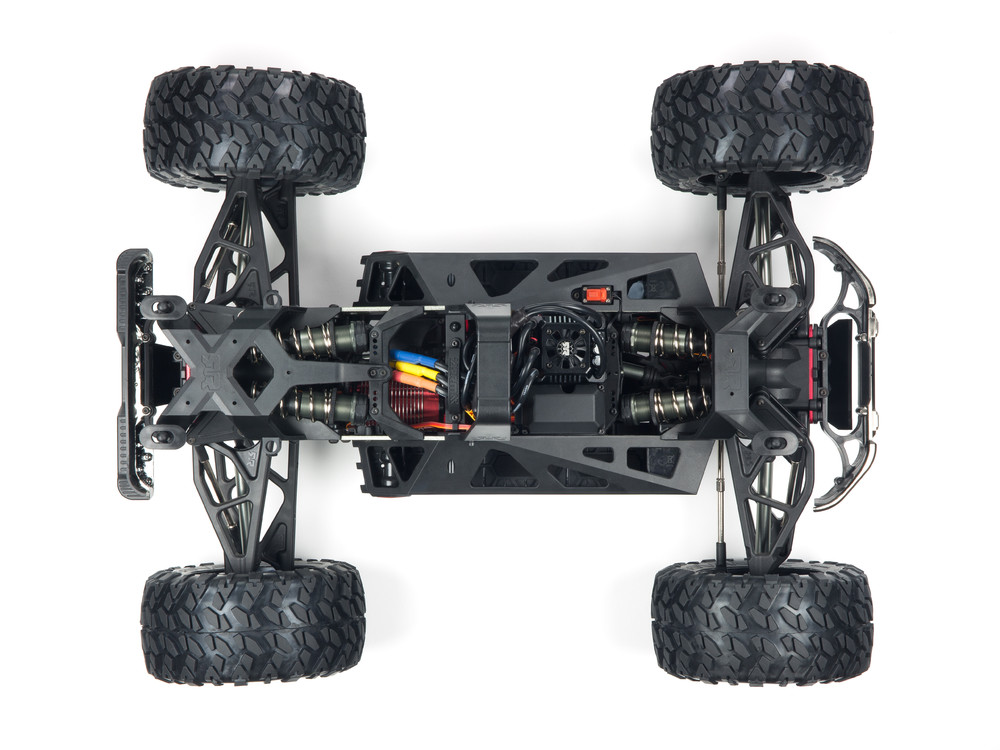 Одной из ключевых особенностей Nero Big Rock 6S является многорежимная трансмиссия, которая позволяет водителю подстраиваться под любые условия эксплуатации. Полноприводная трансмиссия оснащена тремя металлическими дифференциалами (передний, центральный и задний), которые можно блокировать с помощью аппарата управления Tactic TTX-300 2,4GHz и технологии Diff Brain. Таким образом, вы можете быстро переключаться между четырьмя режимами трансмиссии: BLAST для максимальной скорости, WHEELIE для эффектных трюков, DRIFT для контролируемого заноса и CLIMB для сложных внедорожных условий.