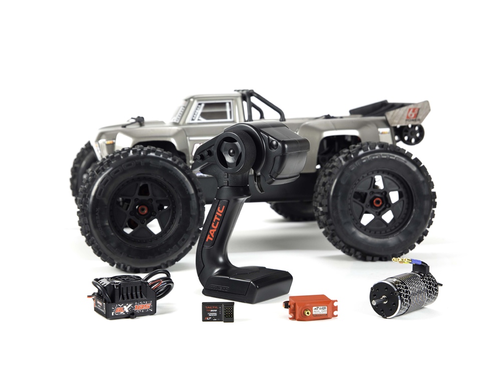 В комплект входит аппаратура управления Tactic TTX300 3CH, а также инструкция и необходимые инструменты для сборки и настройки. Для полноценной работы автомобиля потребуется силовой аккумулятор (LiPo 4-6S ~5000mAh 30C), зарядное устройство, а также 4 батарейки типа "АА".