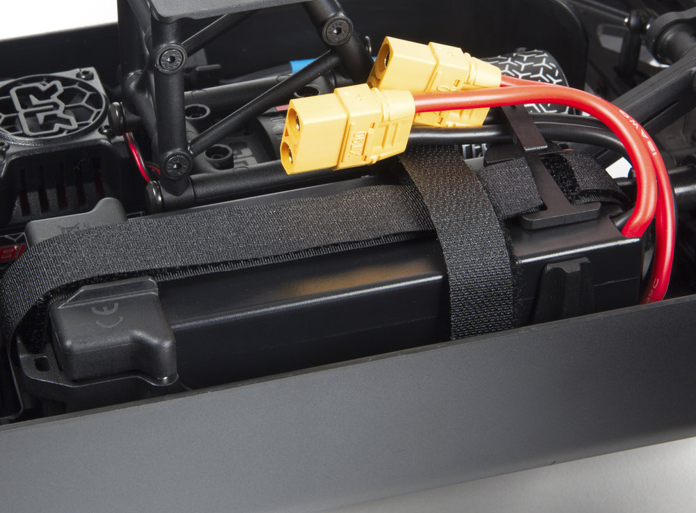 Влагозащитный бокс для приемника гарантирует беспечную работу электроники в любых погодных условиях. Улучшенное крепление аккумулятора и усиленное крепление сервопривода обеспечивают надежное соединение всех частей, в то время как композитные передний и задний бамперы выступают дополнительной защитой от повреждений. Модель также оснащена современным антиопрокидывателем, который поможет предотвратить перевороты во время активной езды.