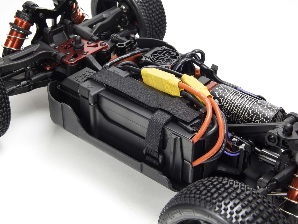 Модель выполнена в новом ярком дизайне и оснащена усиленным корпусом дифференциала, что обеспечивает надежность и долговечность автомобиля даже в самых сложных условиях. Специальная защита крепления амортизатора защищает от случайных повреждений, а влагозащитный бокс для приемника предотвращает попадание влаги в электронику, что значительно увеличивает срок службы устройства.