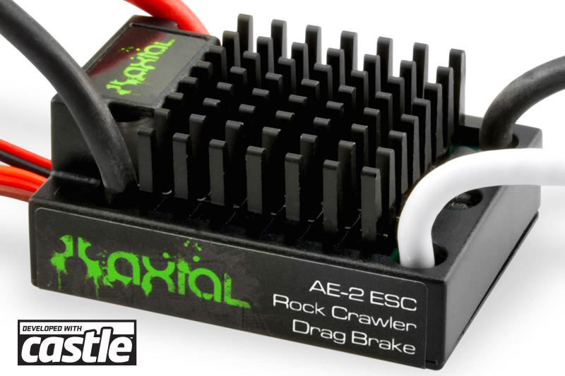 Модель оснащена мощным коллекторным электродвигателем 20 витков 540 класса, который обеспечивает отличную производительность. Регулятор скорости Axial AE-2 ESC, содержащий отсечку для LiPo аккумуляторов и функцию "drag brake", позволяет удерживать краулер на склонах, что делает его идеальным для сложных маршрутов. Возможность программирования регулятора с помощью Castle Link (продается отдельно) дополнительно улучшает управляемость и настройки модели.