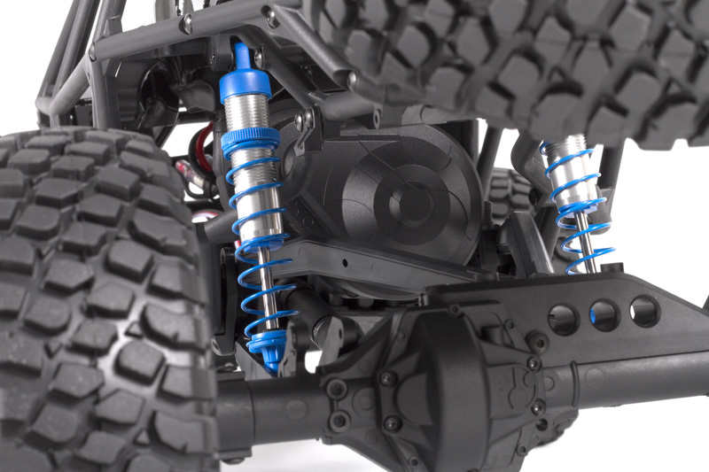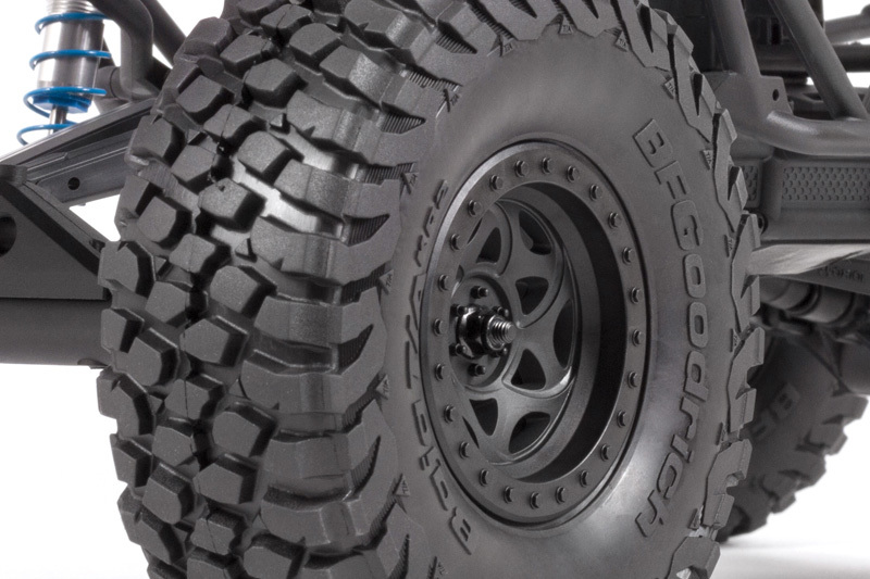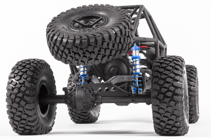 В конструкции модели предусмотрены полностью независимые амортизаторы с большим ходом и алюминиевыми маслонаполненными компонентами, что обеспечивает отличную управляемость и плавность хода. Полный карданный привод всех колес гарантирует максимальное сцепление с дорогой, а качественная внедорожная резина Axial BFGoodrich Baja KR2 обеспечивает уверенность при прохождении любых препятствий.
