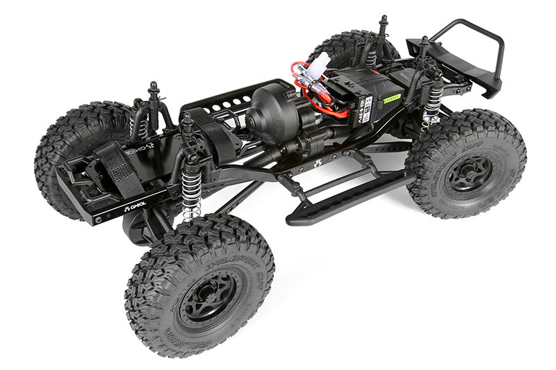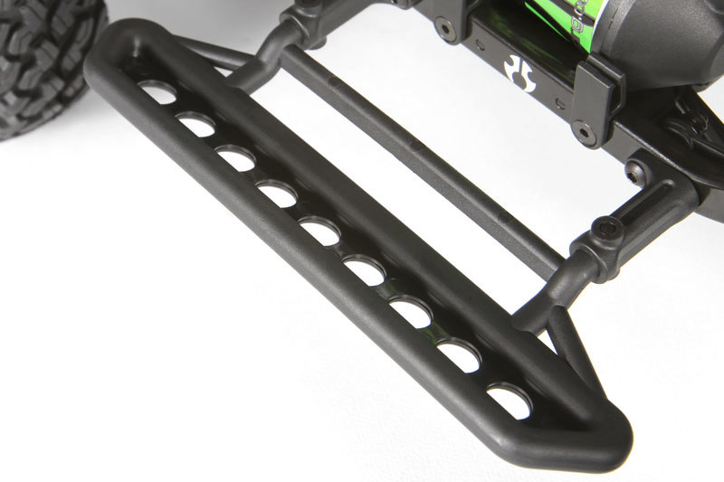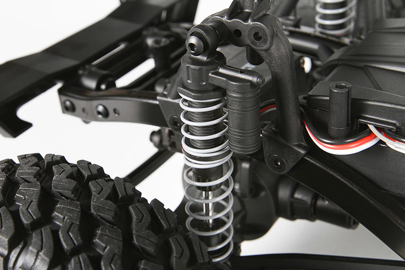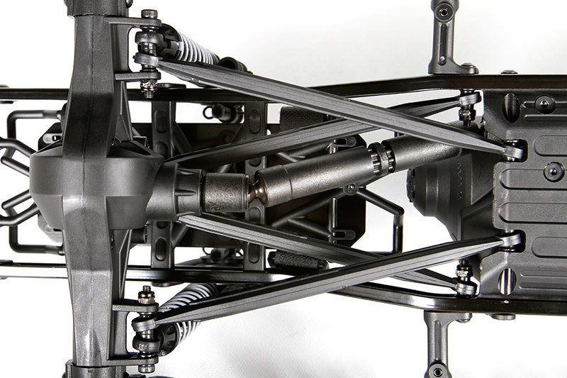 Главной особенностью модели является прочная рама, изготовленная из легкого алюминия, которая защищает все узлы от повреждений при эксплуатации на сложных л terrains. Модель оборудована неразрезными заблокированными мостами на продольных тягах, которые обеспечивают отличное сцепление и проходимость на различных покрытиях — от грязи до каменных глыб. Подвеска имеет полную независимость и возможность регулировки, что позволяет адаптировать характеристики автомобиля под конкретные условия.
