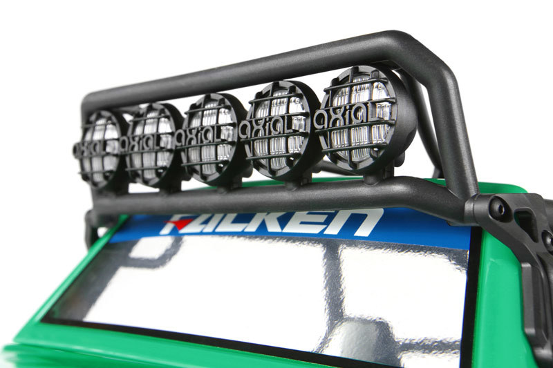 Axial SCX10 Jeep G6 Falken Edition также имеет реалистичный кузов, который можно дополнительно оснастить светодиодами, что придаст модели ещё большую атмосферность в темное время суток. В комплект входит двухканальная аппаратура управления Axial AX-3 на частоте 2.4GHz, что обеспечивает стабильное соединение и точное управление.