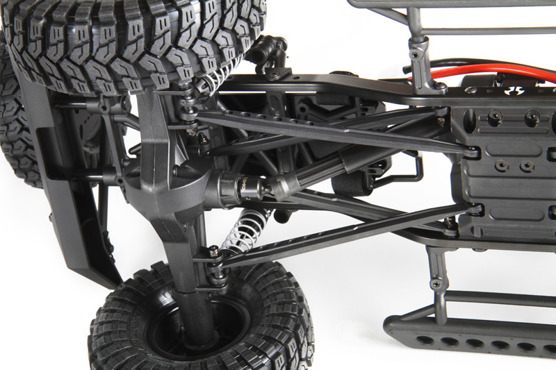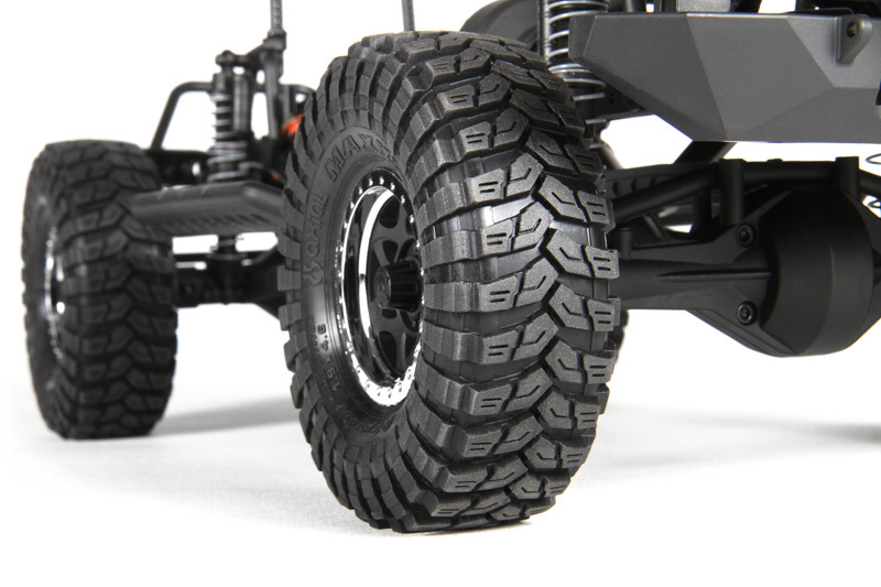 Рама выполнена из прочного алюминия, что гарантирует надежность и долговечность конструкции. Неразрезные, заблокированные мосты, установленные на продольных тягах, в сочетании с независимой подвеской и высококачественной внедорожной резиной Maxxis Trepador, позволяют без проблем проходить через грязь, песок или снег. Каждая деталь здесь продумана до мелочей, включая усиленные шестерни трансмиссии и мощную рулевую серву с металлическим редуктором.