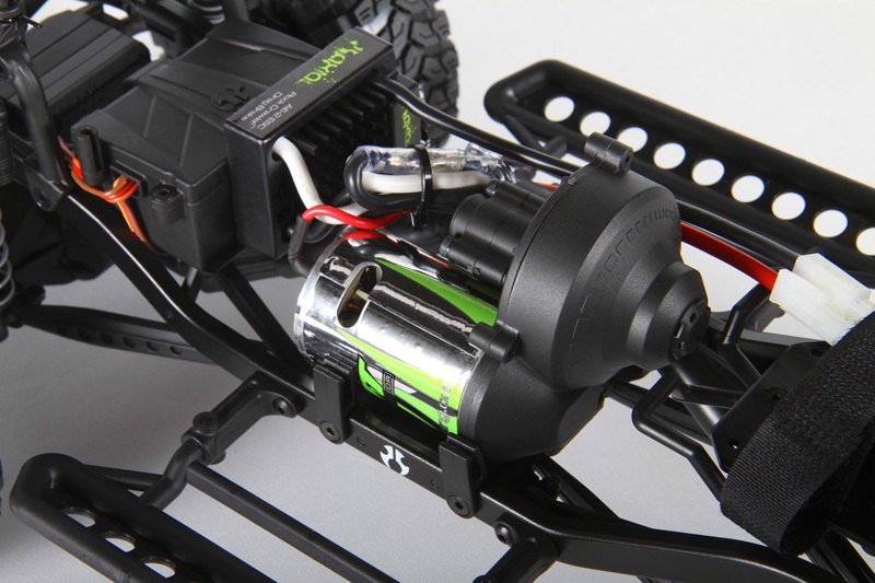 Одним из ключевых преимуществ модели является программируемый регулятор скорости Axial AE-2 с функцией "drag brake", позволяющая удерживать модель на крутых склонах, что особенно важно при преодолении препятствий. Благодаря влагозащищенному радио-боксу, приемник защищен от воздействия влаги, что делает эту модель еще более универсальной.