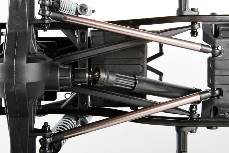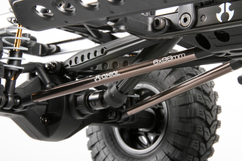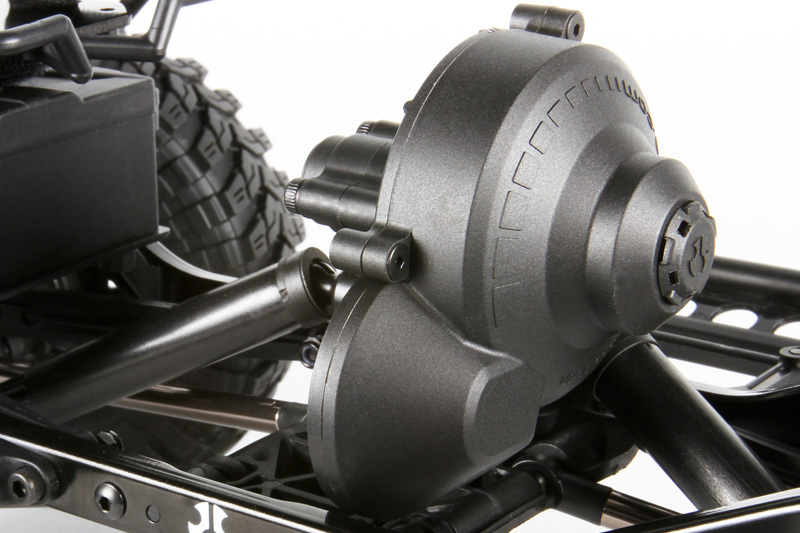 Axial SCX10 оснащен всем необходимым для преодоления сложных препятствий, таких как грязь, песок и каменные глыбы. Его отличительная черта — цельные и заблокированные мосты на продольных тягах, которые обеспечивают непревзойденную проходимость и стабильность. Полная независимая подвеска и алюминиевые маслонаполненные амортизаторы с регулировкой позволяют адаптировать характеристики под различные условия эксплуатации. Трансмиссия Axial имеет эффектный слиппер, избегающий перегрева шестерён и позволяющий использовать максимальную мощность модели.