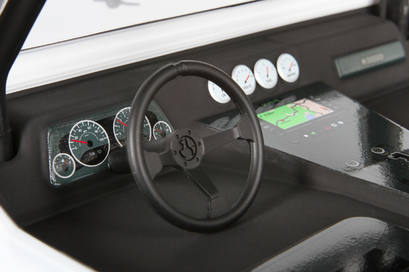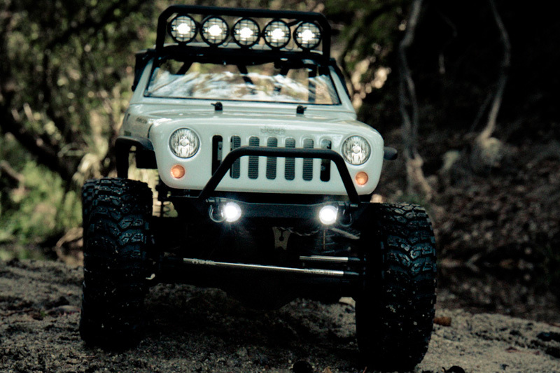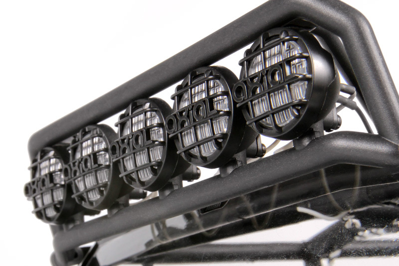 Защита элементов радиоуправляемого устройства обеспечивается влагозащищенным радио-боксом, предохраняющим приемник от брызг, а полный карданный привод гарантирует отличную тягу на любых типах покрытия. В дополнение к этому, в комплект входят 5 держателей для светодиодов, расположенных на крыше, что позволяет добавить индивидуальности своему внедорожнику.