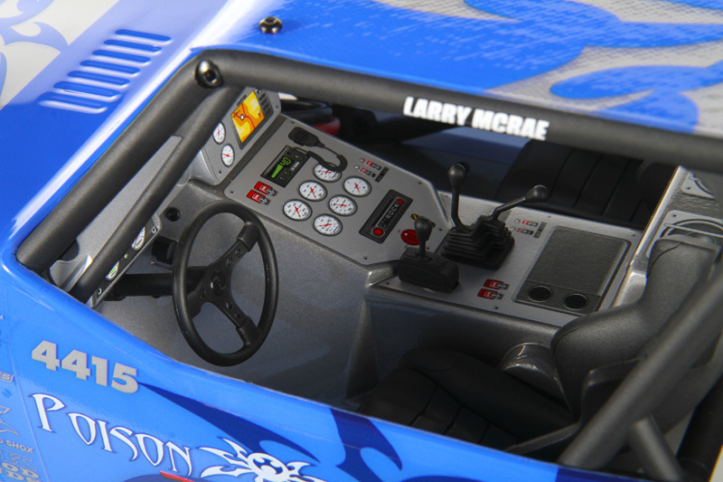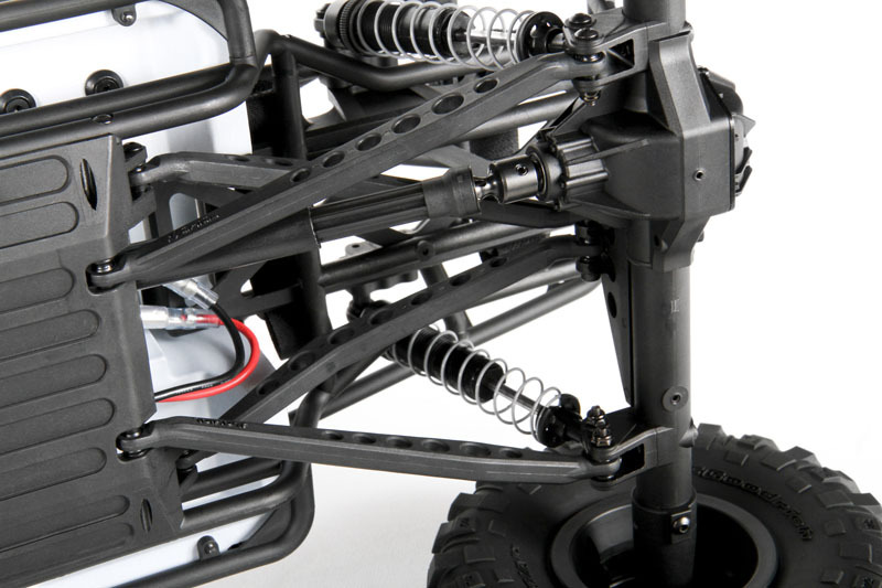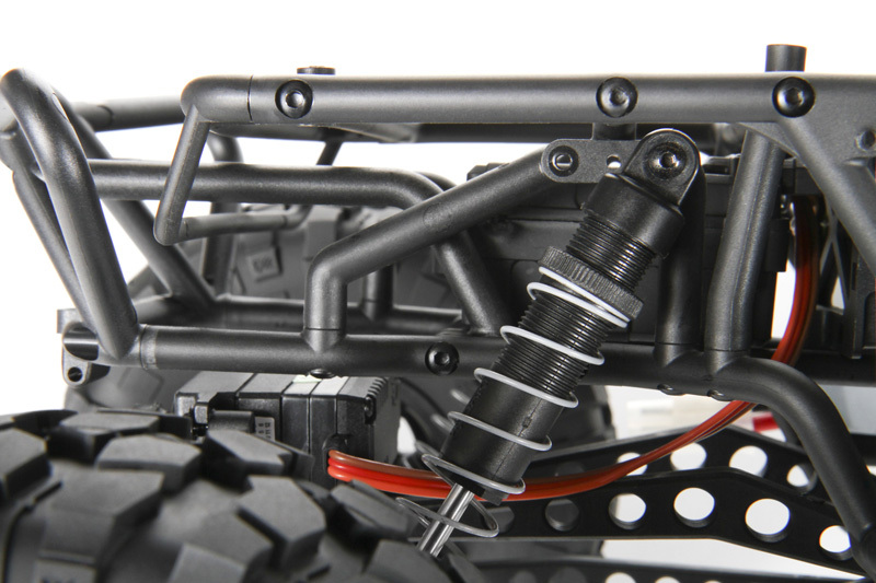 Каждое колесо оснащено полностью независимой подвеской и пластиковыми маслонаполненными амортизаторами с регулировкой, что обеспечивает отличное сцепление и плавность хода. Радует также легкий доступ к дифференциалам для удобства обслуживания. Реалистичный кузов, рабочие сиденья и панель приборов создают атмосферу настоящего внедорожника.