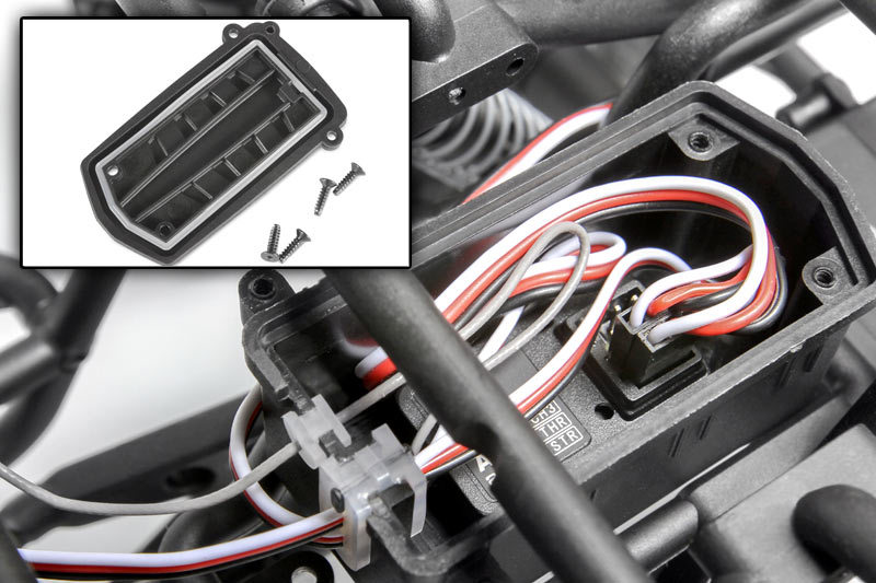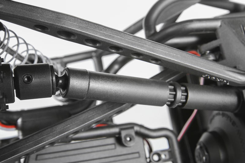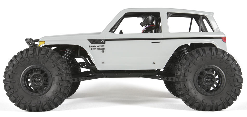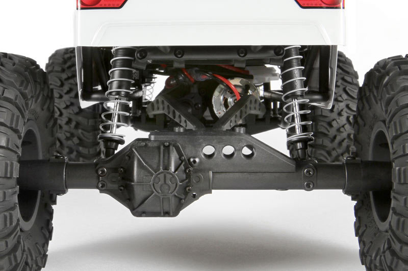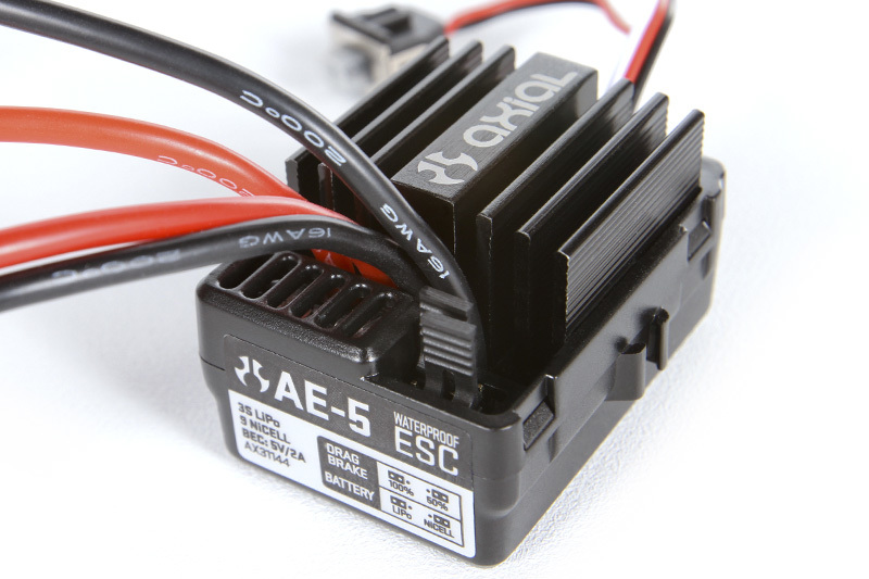 Мощный коллекторный электромотор класса 540 с 20 витками обеспечивает отличную динамику. Влагозащищенный регулятор скорости Axial AE-5 поддерживает аккумуляторы LiPo и включает в себя полезную противооткатную функцию "drag brake", позволяющую удерживать модель на склонах, даже когда тормоза отпущены. Качественное управление осуществляется с помощью 2-канальной аппаратуры Axial AX-3 на частоте 2.4GHz, что обеспечивает стабильную связь даже на дальнем расстоянии.