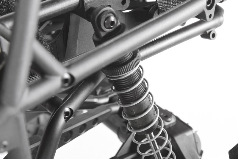 Модель оснащена высокоэффективной рулевой серво Tactic TSX45 с металлическим редуктором, что гарантирует надежность в условиях частого использования. Полностью независимая подвеска и пластиковые маслонаполненные амортизаторы с резьбовой регулировкой позволяют легко справляться с неровностями на трассе. Колеса Wraith Spawn дополнены резиной Axial Ripsaw, обеспечивающей отличное сцепление с любой поверхностью.