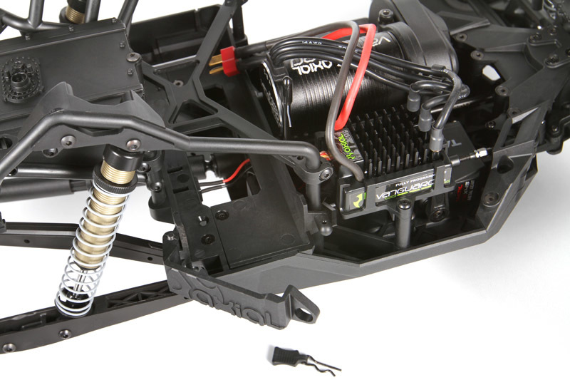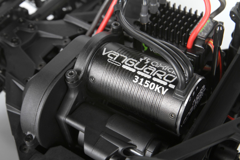 В центре конструкции находится бесколлекторный электромотор Axial Vanguard 3150kV, который обеспечивает отличную динамику и высокие скорости. Партнёрство с Castle Creations позволило создать влагозащищённый регулятор скорости Axial Vanguard AE-3, который можно программировать с помощью дополнительного USB адаптера Castle Link. Это обеспечивает дополнительную гибкость и возможность настройки под конкретные условия эксплуатации.