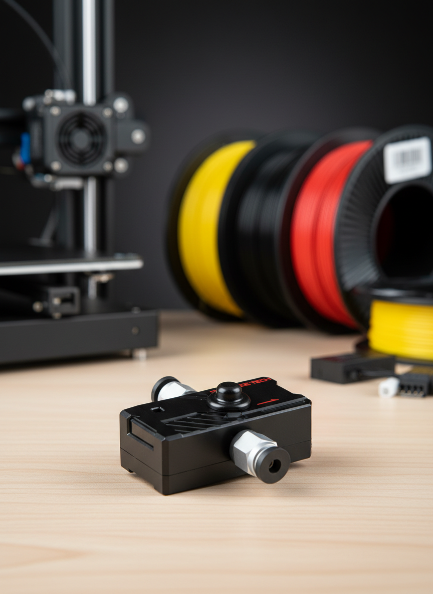 Кроме того, устройство отличается наличием индикации состояния, что позволяет пользователю в реальном времени отслеживать работу датчика. С помощью рычага заправки филамента процесс установки и замены филамента становится более простым и быстрым.