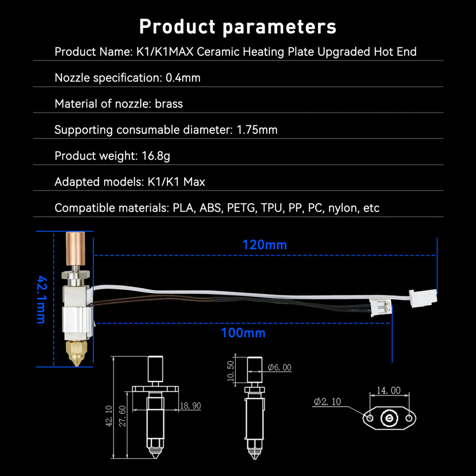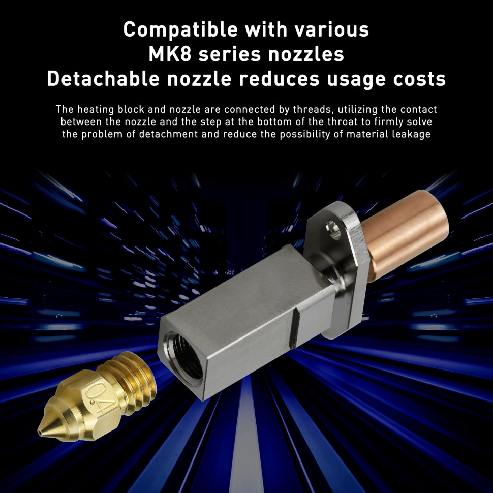 Основные элементы комплекта обеспечивают стабильную работу хотэнда, уменьшая вероятность засоров и обеспечивая равномерную подачу филамента. Каждый компонент тщательно подобран для обеспечения максимальной совместимости с 3D-принтерами, что позволяет легко обновить или заменить детали по мере необходимости.