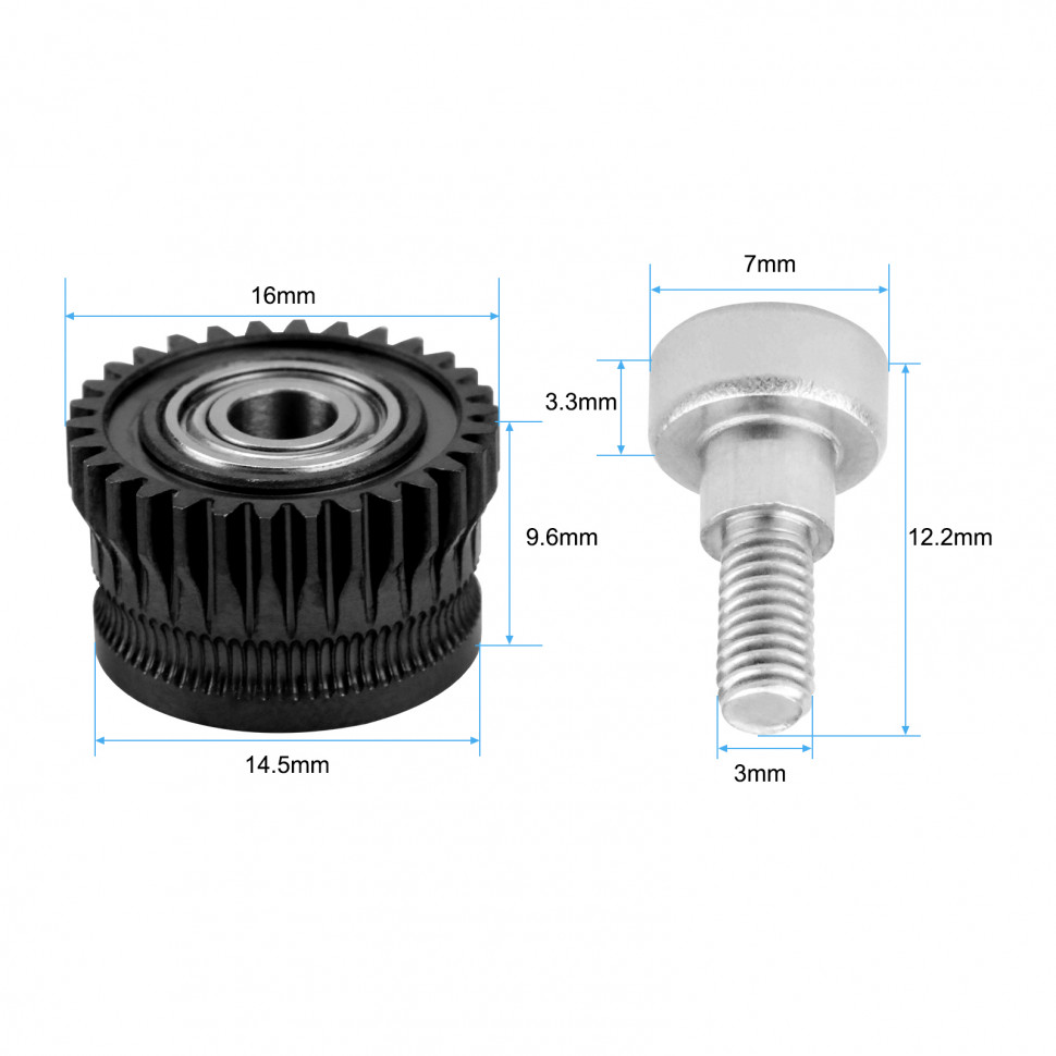 С точки зрения конструкции, шестерни имеют продуманную геометрию, которая позволяет уменьшить проскальзывание и обеспечить стабильную подачу филамента. Это особенно актуально при использовании различных типов материалов, таких как PLA, ABS, PETG и других. Комплект подходит как для опытных пользователей, так и для тех, кто только начинает осваивать мир 3D-печати.