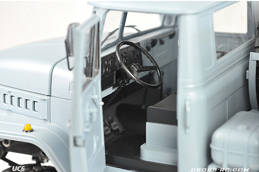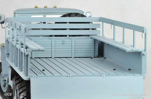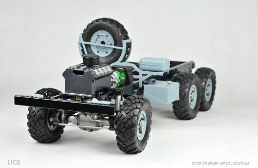 Шасси модели укомплектовано 2-ух скоростной коробкой передач с коллекторным мотором 540 класса, что обеспечивает отличную маневренность и адаптируемость к разным условиям. Полный привод 6x6 гарантирует устойчивость на сложных поверхностях, а металлические карданные валы и мосты добавляют надежности и долговечности конструкции. Кабина, выполненная из ABS-пластика, вмещает полноценный и детализированный интерьер с открывающимися дверями и капотом.