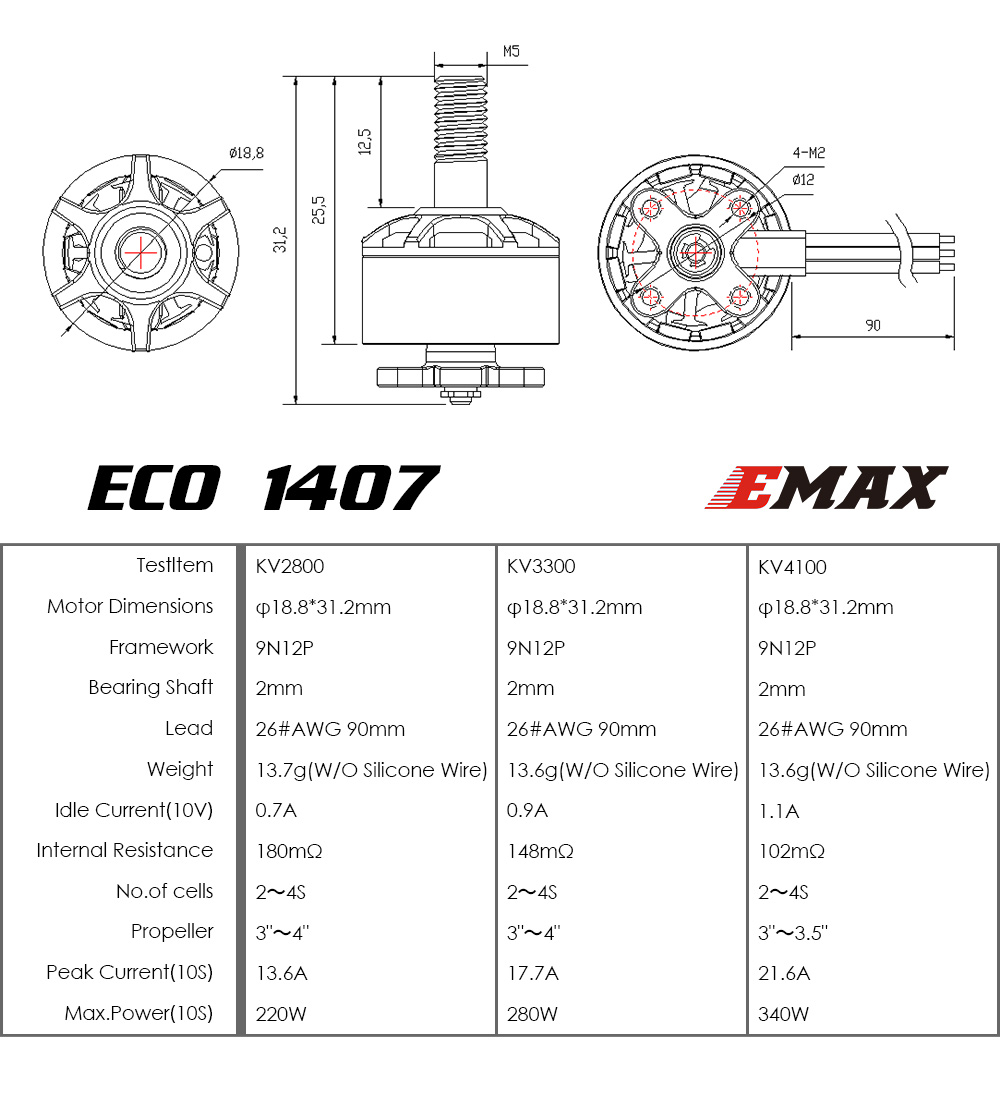 С моделью 1407 вы можете рассчитывать на отличную производительность, что позволяет вам наслаждаться динамичными полетами и стабильным управлением. Электродвигатель поддерживает напряжение от 2 до 4S, позволяя использовать широкий диапазон аккумуляторов, что добавляет гибкости при выборе источника питания. При этом его высокая скорость вращения в 3300KV обеспечивает быстрое реагирование и отличную маневренность во время полета.