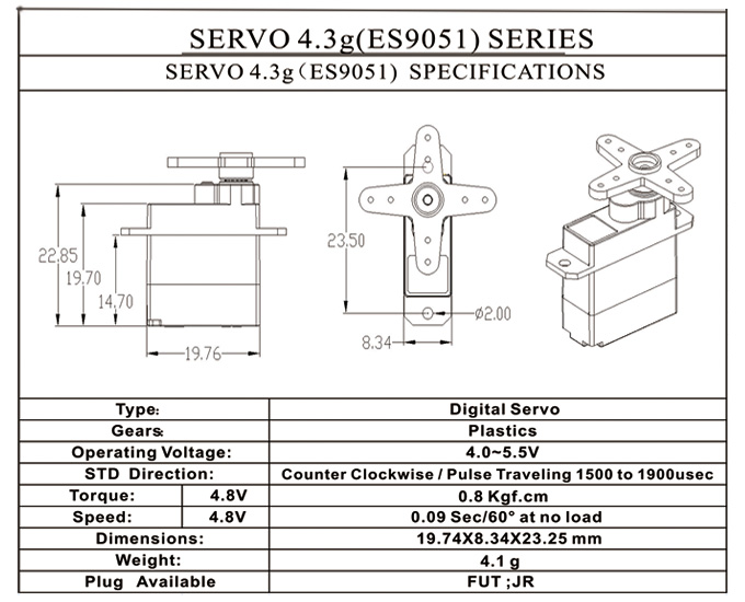Цифровая микро серво EMax ES9051 – это высококачественная рулевая машинка, предназначенная для использования в небольших радиоуправляемых авиамоделях. Обладая компактными размерами и малым весом, она идеально подходит для моделей, где каждая грамма имеет значение. Серво выполнено из прочных материалов, что обеспечивает его долговечность и надежность в эксплуатации.