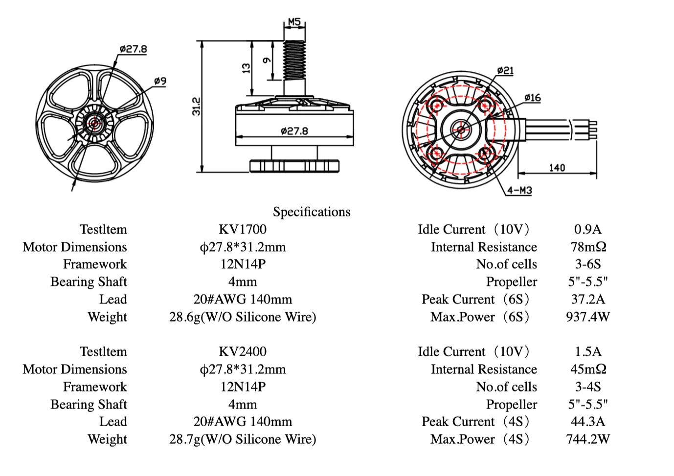 - Напряжение: 3-6S