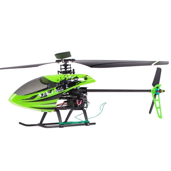 С длиной 510 мм и высотой 165 мм, Esky Honey Bee V2 обладает компактными размерами, что позволяет использовать его как на открытых пространствах, так и в ограниченных условиях. Основной ротор диаметром 510 мм обеспечивает отличную подъемную силу, а хвостовой ротор диаметром 150 мм помогает поддерживать стабильность при полете. Вес модели составляет всего 320 г, что способствует её легкости и маневренности.